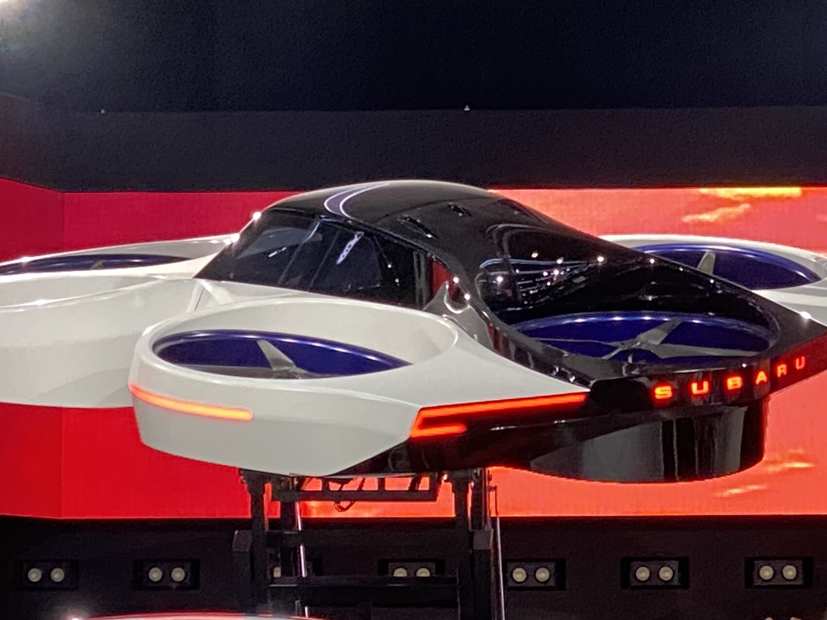 空飛ぶノリモノの展示もありました。モビリティショーの雰囲気からすれば、このようなノリモノが空を行き交うことが普通のことになるのは、そう遠くない未来なのだろうと思えてきます。